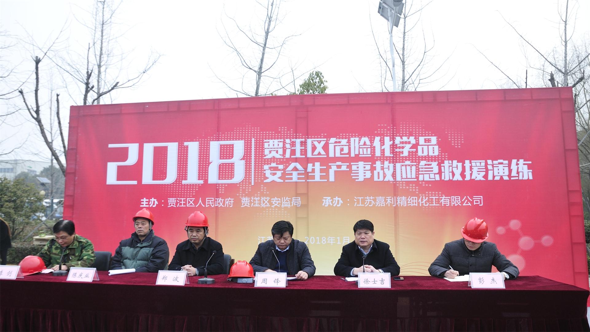 2018年1月19日,由賈汪區(qū)人民政府、賈汪區(qū)安監(jiān)局舉辦,徐州工業(yè)園區(qū)、徐州開達(dá)精細(xì)化工有限公司(江蘇嘉利精細(xì)化工有限公司)承辦的“2018年賈汪區(qū)危險(xiǎn)化學(xué)品安全生產(chǎn)事故應(yīng)急演練活動(dòng)”在我公司順利舉行,本次活動(dòng)是對(duì)賈汪區(qū)危險(xiǎn)化學(xué)品使用單位在生產(chǎn)過程中出現(xiàn)緊急事故時(shí),企業(yè)自救和政府各部門聯(lián)合救援能力的一次檢驗(yàn)。出席本次活動(dòng)的領(lǐng)導(dǎo)有:賈汪區(qū)副區(qū)長(zhǎng)周峰、區(qū)政府辦主任鄭波、區(qū)安監(jiān)局局長(zhǎng)徐士吉以及區(qū)參演單位的領(lǐng)導(dǎo)及專家等。